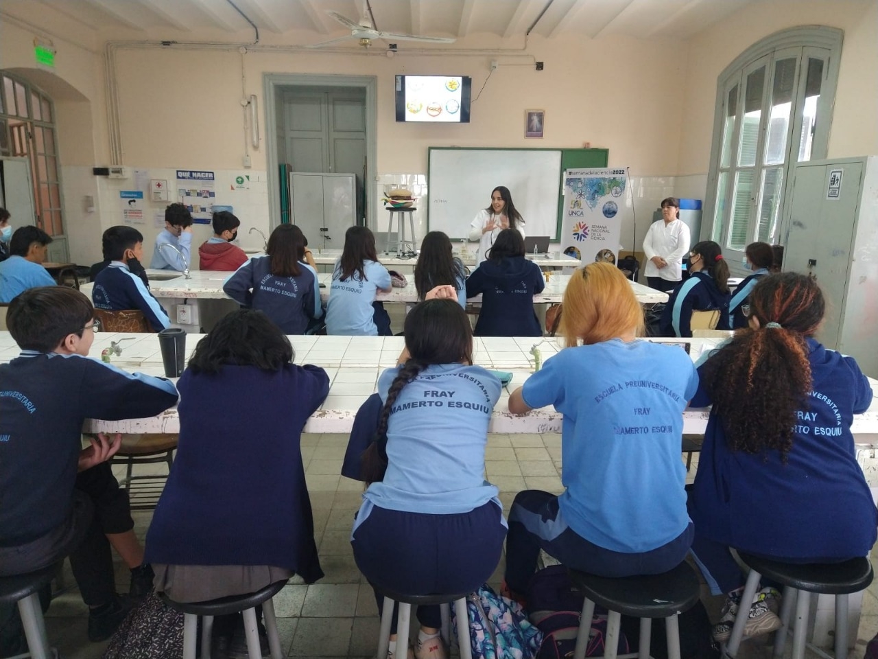 Invitados por los docentes de la escuela preuniversitaria Fray Mamerto Esquiú, personal del laboratorio Plan Control de Alimentos de la Administración de Bromatología Municipal de la Capital participó de las actividades que tienen como objetivo fomentar la participación ciudadana en cuestiones relacionadas con la Ciencia y la Tecnología, acercar a la sociedad la cultura científica y mostrarle las principales innovaciones que se están realizando en diversos campos.