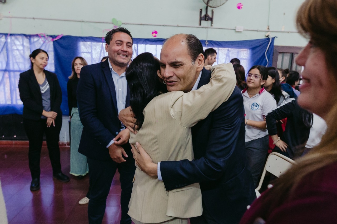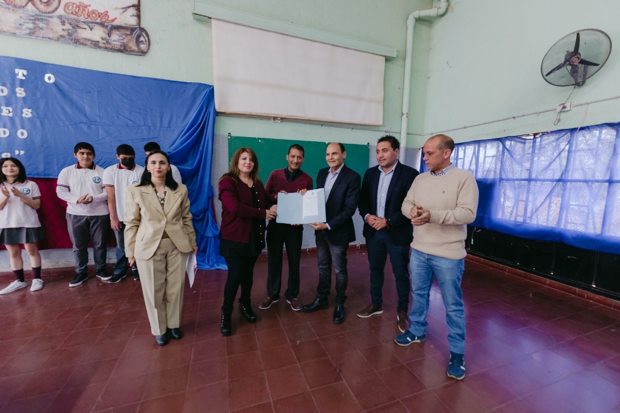 Acompañaron al intendente, el presidente del CD, Nicolás Zabaleta, el concejal Francisco Sosa, directivos, profesores y alumno