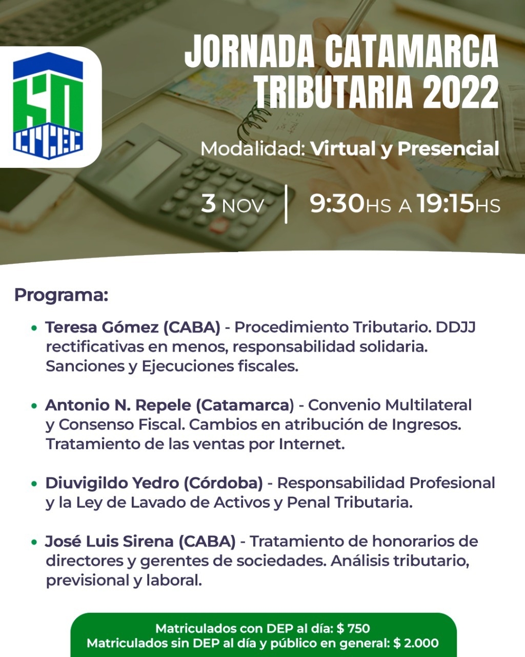 Los matriculados con su cuota de Derecho de Ejercicio Profesional al día deben invertir $750 en la inscripción, mientras que los demás profesionales y el público en general, $2.000.