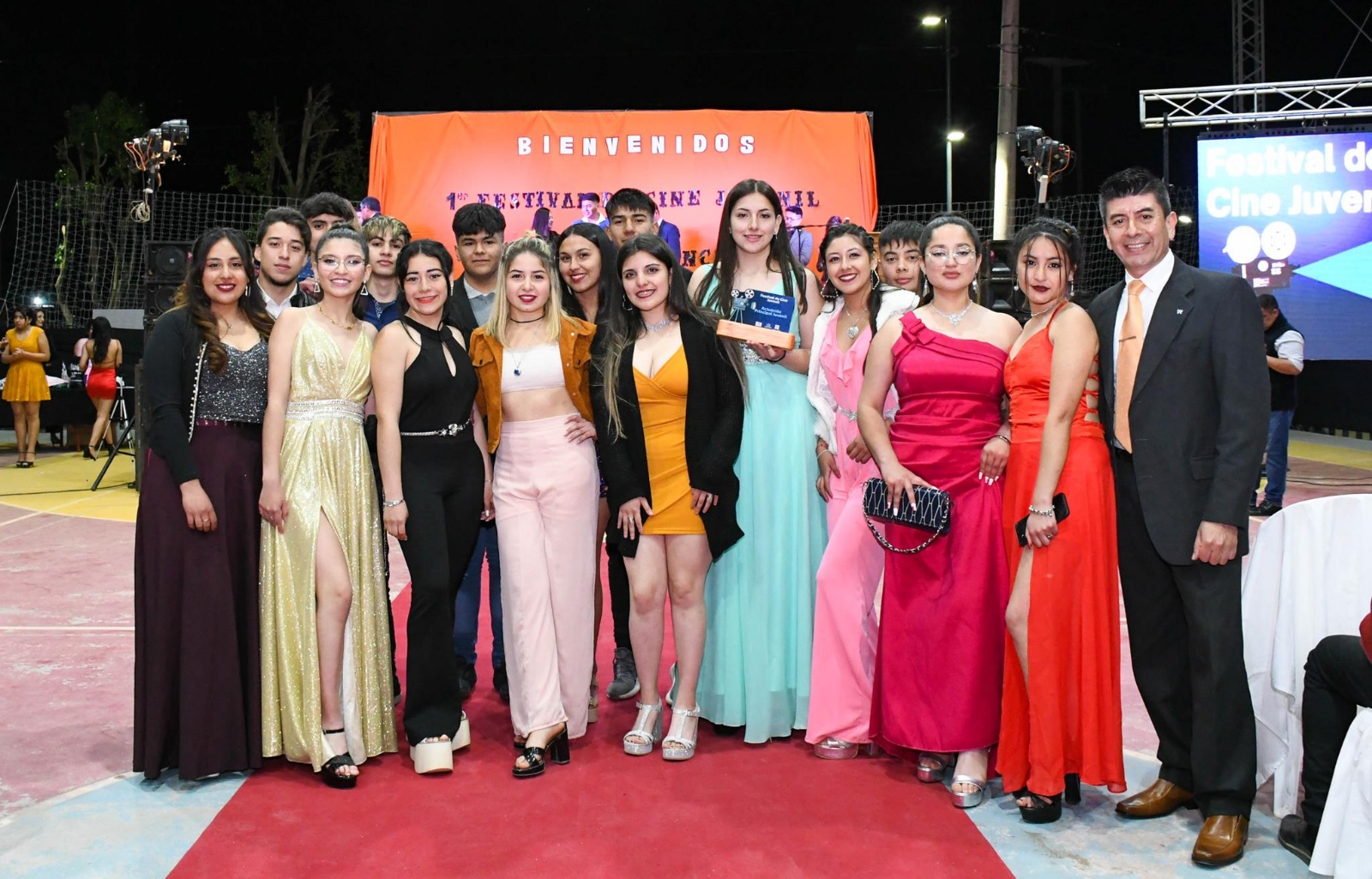 En el acto de premiación que se realizó en el polideportivo de Los Altos, participaron el Intendente Raúl Barot, el director de Educación Secundaria, Luis Bazán, el coordinador del "Festival Nacional de Cine Juvenil 2022", Daniel Pañaloza, la directora de la Escuela “Santa Rosa de Lima” de Tucumán, Viviana Hernández, el director de la Escuela Secundaria N°24, Julio Vega y la referente de Educación Solidaria, Sonia Retamozo.