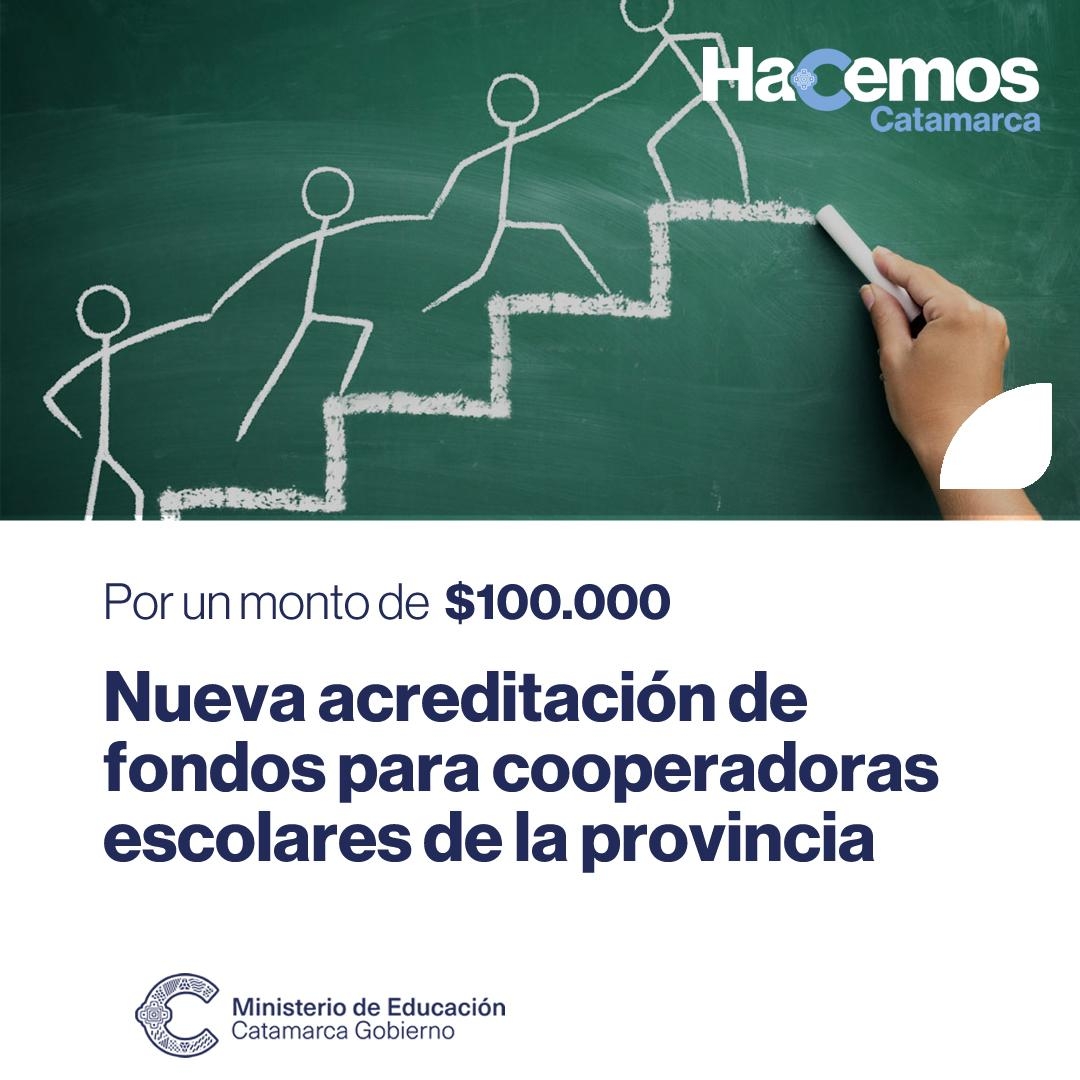 En esta ocasión, los fondos que representan un total de $100.000 para cada escuela, se acreditaron en las cuentas de los 40 establecimientos habilitados de Catamarca.