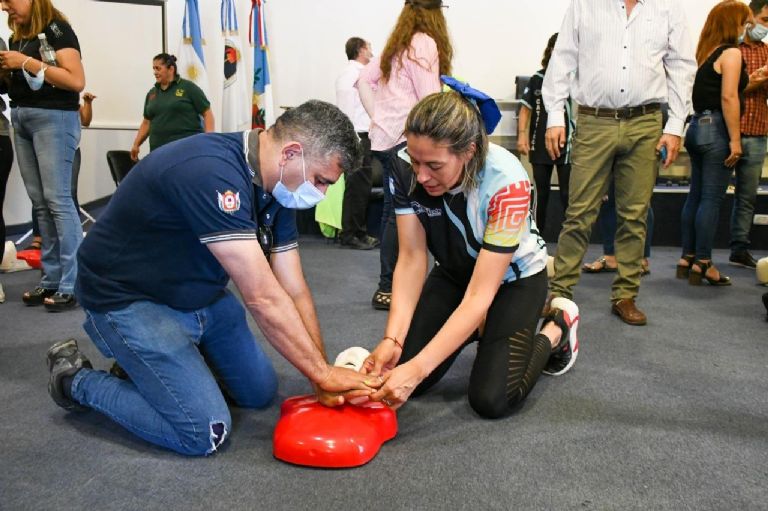 Esta propuesta que lleva a cabo la dirección, tiene como finalidad dar cumplimiento a la Ley Provincial N°5.623 y Ley Nacional N°26.835 dónde se establece la enseñanza obligatoria de técnicas de reanimación cardiopulmonar en instituciones educativas y personal administrativo de la provincia. Ante una importante cantidad de asistentes, se instruyó a los presentes para poder asistir a una persona en situación de riesgo de vida, con técnicas básicas, brindando un espacio para la escucha activa y práctica de los agentes.
