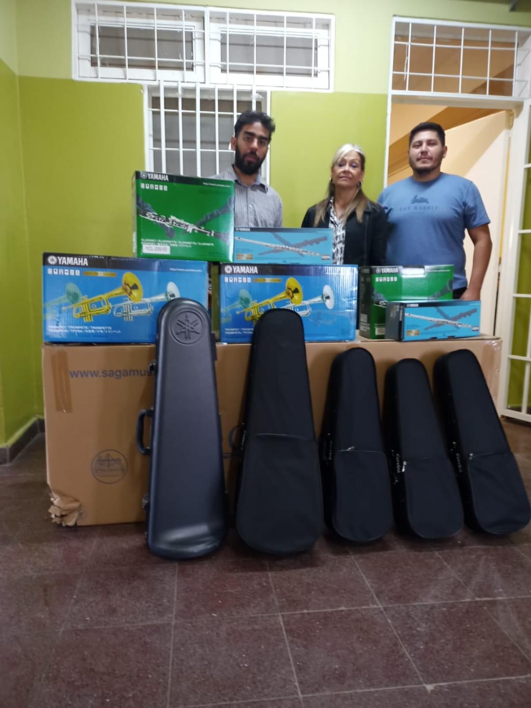 La importante entrega de instrumentos otorgados para distribuir entre las sedes está conformada por: 10 clarinetes, 10 trompetas, 10 trombones, 10 flautas traversas, 1 batería, 20 violines, 4 violas y 6 contrabajos.