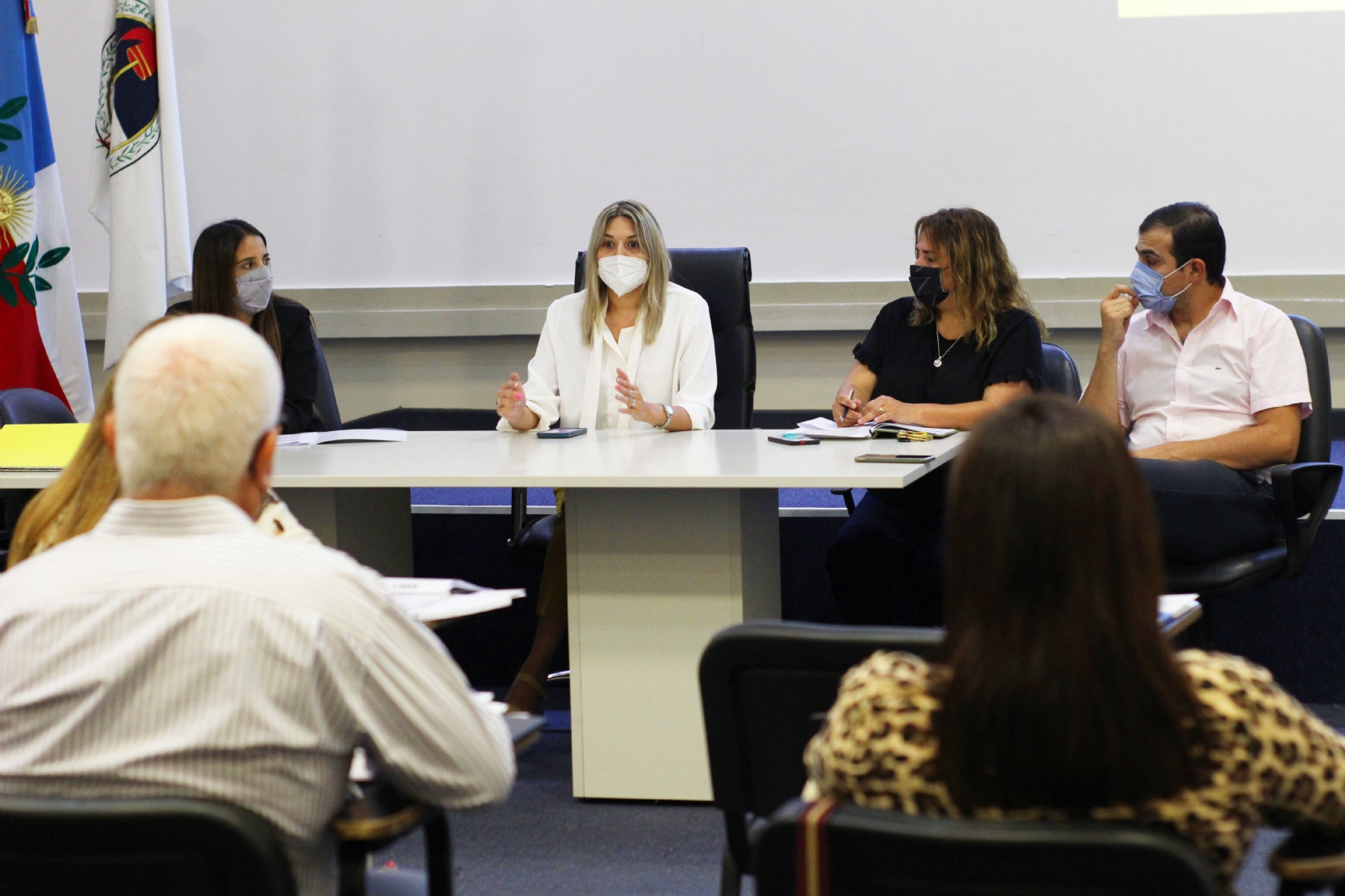 El Ministerio de Educación llevó a cabo en el salón auditorio la primera reunión general del año con los supervisores de Educación Secundaria, que estuvo encabezada por la titular de la cartera educativa Andrea Centurión, la secretaria de Gestión Educativa, Analía Valcalda y la directora del nivel Patricia Lobo, para definir pautas de trabajo para el ciclo lectivo 2022.