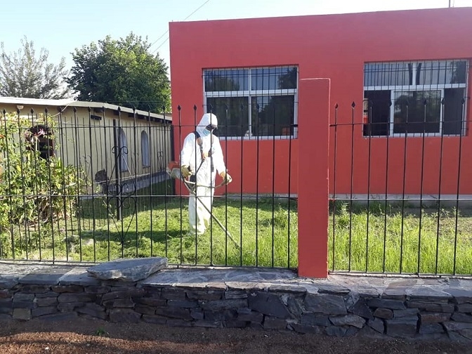 En los próximos días avanzarán con el predio que comprende la Escuela Normal, primaria, secundaria y jardín, playón deportivo y feria Arco Iris. Por otro lado, se realizaron las mismas tareas en distintas instituciones de la ciudad.