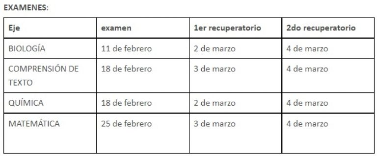 •Licenciatura en Enfermería: Matemática, Biología y Comprensión de Texto.