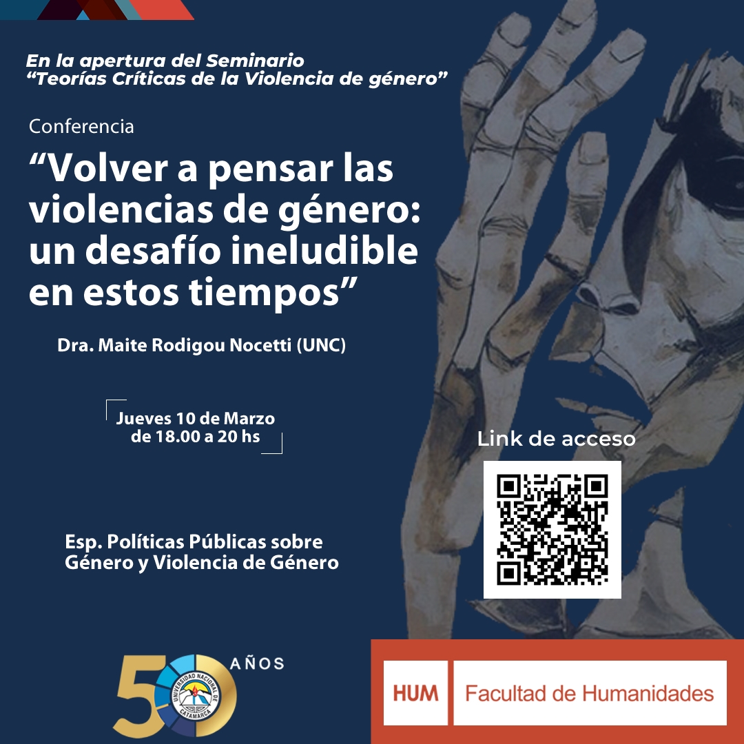 La Facultad de Humanidades de la UNCA en adhesión al 8M, Día Internacional de las Mujeres, invita a la Conferencia: “Volver a pensar las violencias de género: un desafío ineludible en estos tiempos”, a cargo de la Dra. Maite Rodigou Nocetti de la Universidad Nacional de Córdoba (UNC)