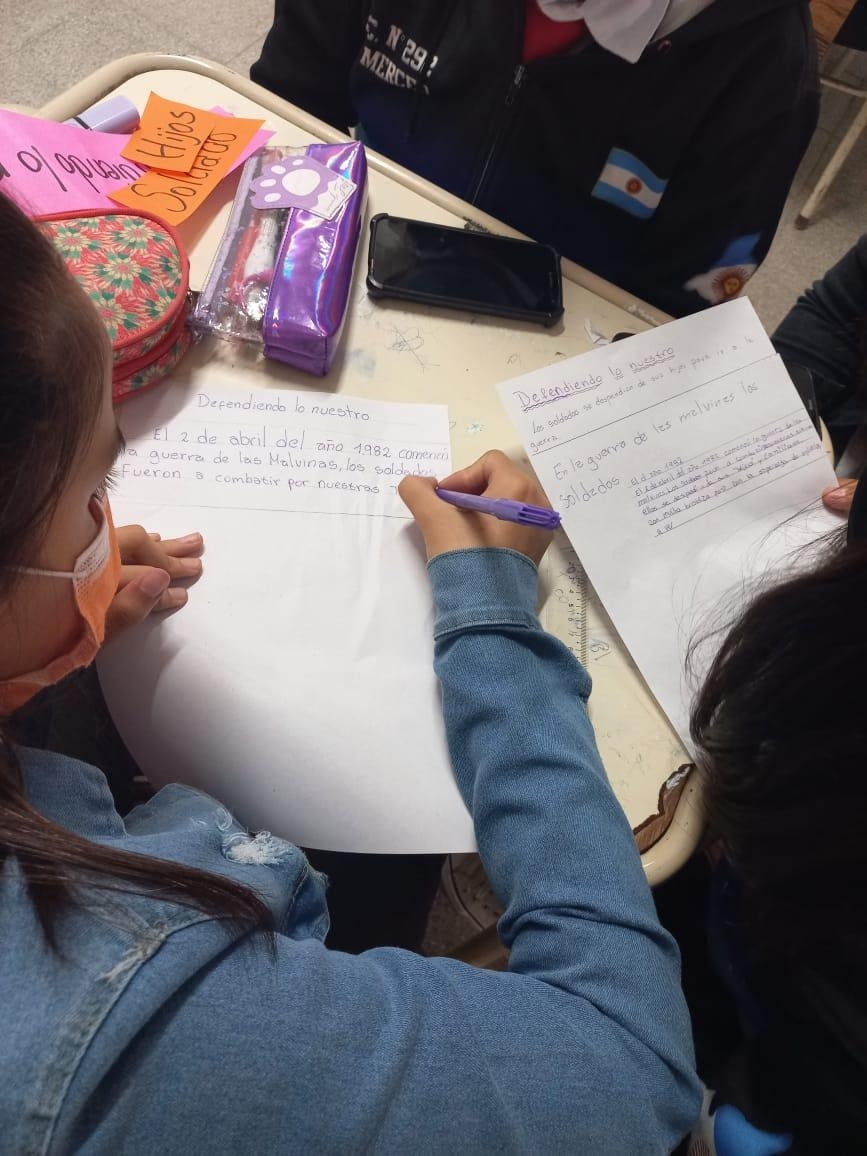 En un tercer bloque, integrantes del Plan de Lecturas Catamarca, narraron una breve introducción sobre la Guerra de Malvinas, para luego realizar consignas que generaron un intercambio de ideas entre los alumnos. Luego, el equipo presentó diversos carteles con palabras, frases e imágenes en donde los estudiantes a través de estos, generaron un poema o microcuento en homenaje a los veteranos y caídos durante el conflicto de Malvinas de 1982.