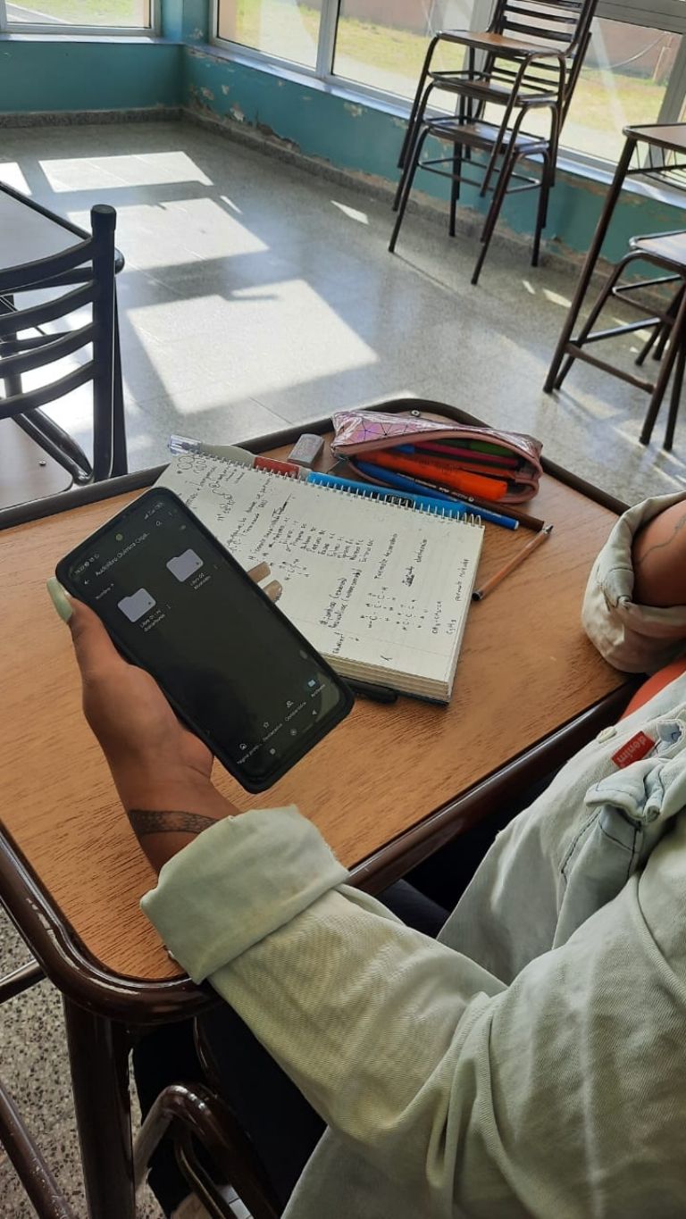 Por otra parte, en la Tecnicatura Superior en Enfermería, se utilizó un audiolibro para llevar adelante la enseñanza de temas referidos al área de Química. En esta oportunidad, se trabajó con material perteneciente a la Dra. Mariela González y con tarjetas de memoria SD que contienen los audiolibros, donadas por la Secretaría de Políticas Públicas Universitarias de la Nación.