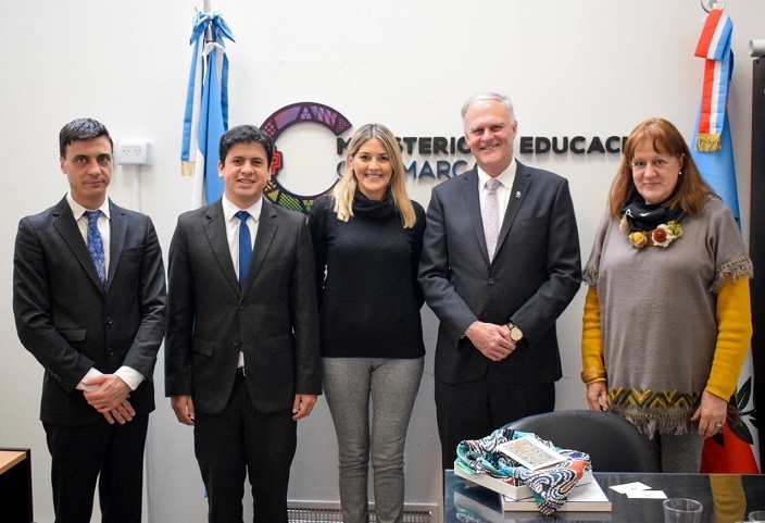 En esta primera reunión, donde estuvo presente también el Secretario de Relaciones Internacionales del Ministerio de Integración Regional, Logística y Transporte, Lic. Gabriel Molina, se avanzó sobre un pedido del gobernador de la provincia, Raúl Jalil que apuesta a la visión de educación bilingüe, donde nuestros estudiantes tengan la posibilidad de acceder a espacios de formación en idioma inglés, que es un proyecto que el primer mandatario provincial junto al embajador habían delineado en conversaciones previas y que ahora continuará la ministra Centurión.