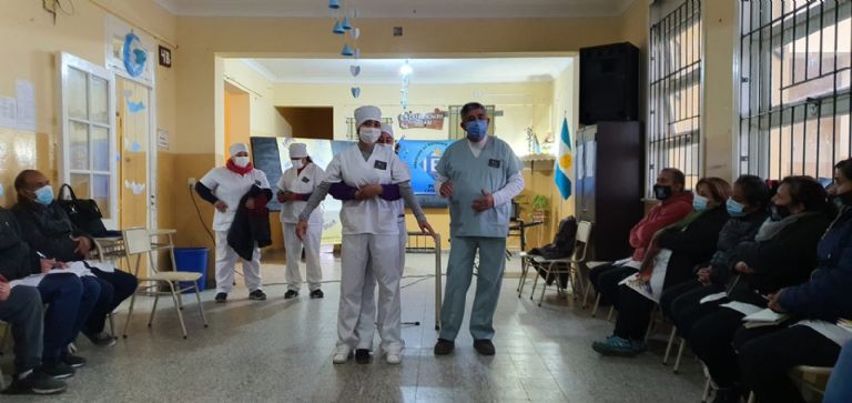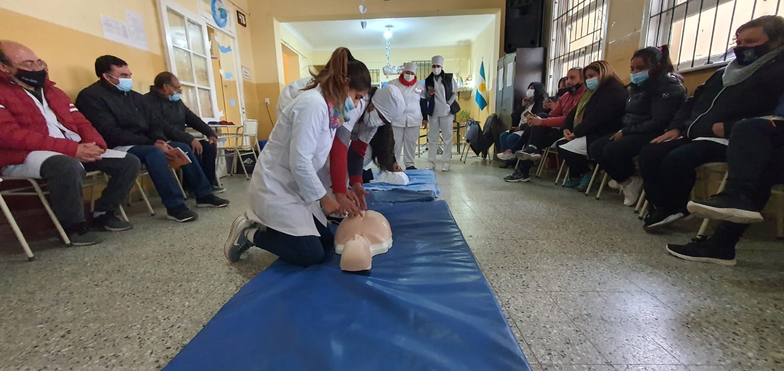 La capacitación que fue solicitada por la directora de la Escuela N° 392 Lilian Díaz, estuvo a cargo del enfermero profesional, Eduardo Centeno, quien, acompañado por estudiantes de 3er año de Enfermería, instruyeron al plantel docente en maniobras de desobstrucción de la vía aérea, Reanimación Cardiopulmonar, asistencia inicial en politraumatizados, en crisis epilépticas, quemaduras y accidentes por animales ponzoñosos.