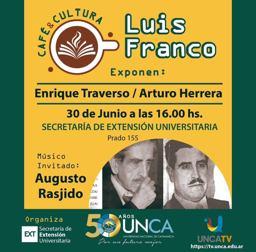 Esta vez, la convocatoria es en la Secretaría de Extensión Universitaria, ubicada en Prado 155 y en esta ocasión, los escritores Arturo Herrera y Enrique Traverso se referirán a Luis Franco, el poeta de Belén.