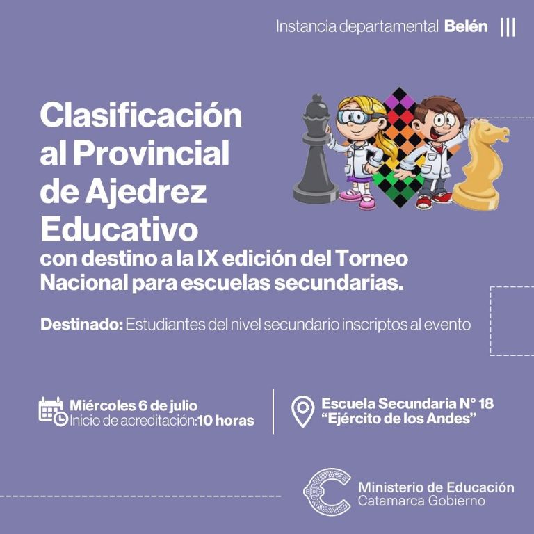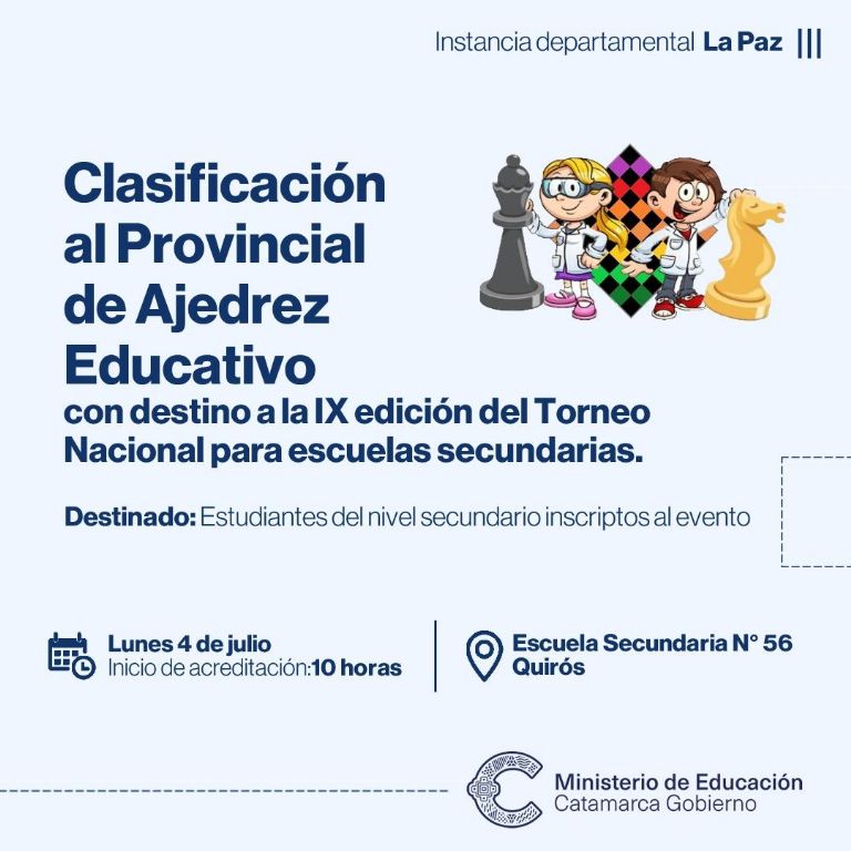 El lunes 4 de julio, se llevará a cabo el primer encuentro en la Escuela Secundaria N°56 de la localidad de Quirós, departamento La Paz, mientras que el miércoles 6 se realizará la segunda convocatoria en la Escuela Secundaria N° 18 “Ejército de los Andes” de Belén. Para dar cierre a la semana, el equipo de la Dirección de Programas Educativos, se trasladará hacia el departamento Tinogasta, para fiscalizar la jornada que se desarrollará en la Escuela Secundaria N° 15 “Libertador Gral. San Martín”.