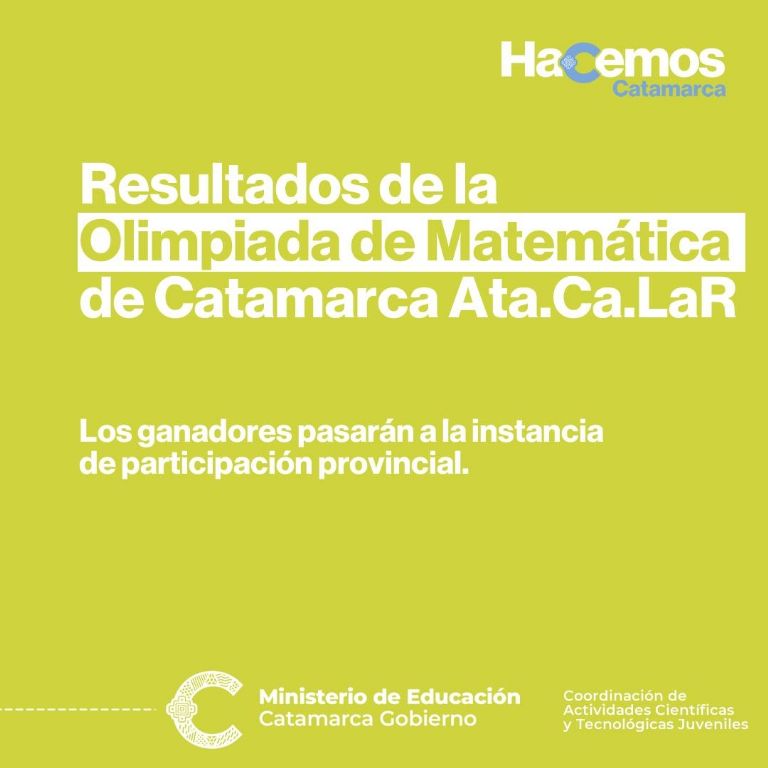 El Ministerio de Educación a través de la Coordinación de Actividades Científicas y Tecnológicas Juveniles (ACTJ) dependiente de la Secretaría de Gestión Educativa, comunica los resultados de la Olimpiada Provincial de Matemática - Atacalar 2022.
