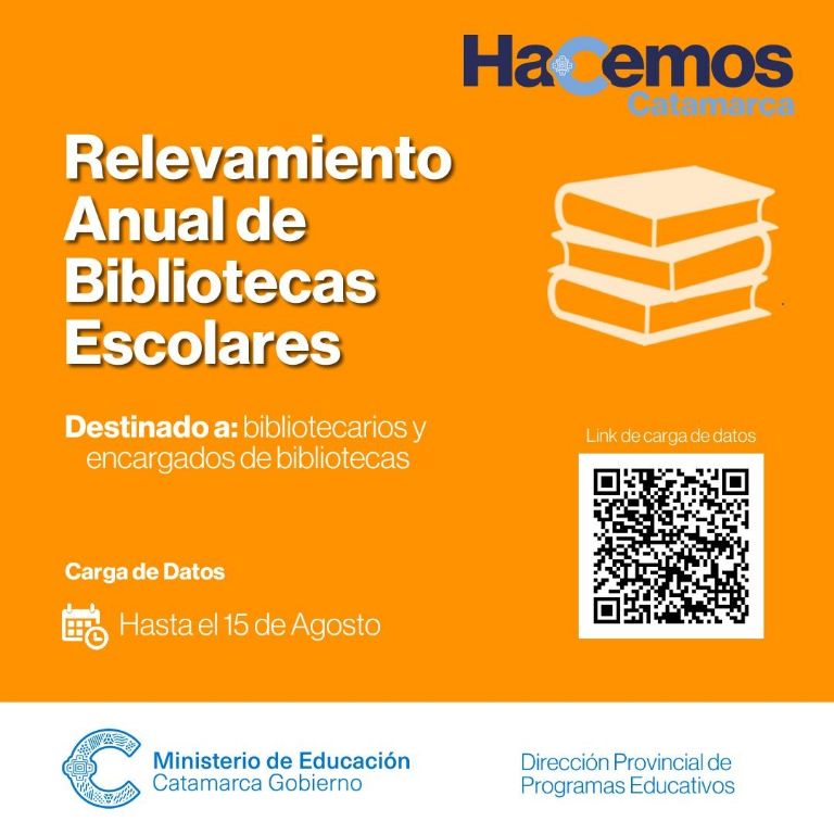 Los bibliotecarios y encargados de bibliotecas deberán ingresar a https://bit.ly/3PYKS3w para realizar la carga, con plazo hasta el día lunes 15 de agosto.