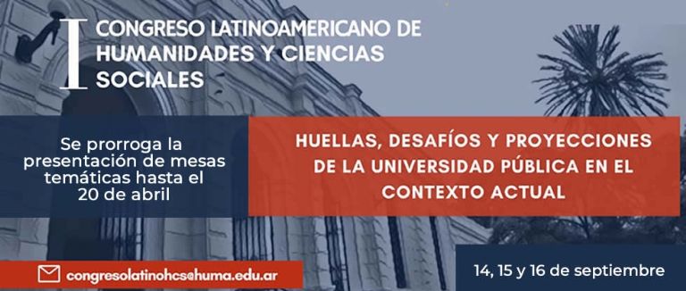Entre el 14 y 16 de septiembre del corriente año se llevará a cabo en Catamarca el I Congreso Latinoamericano de Humanidades y Ciencias Sociales, organizado por la Facultad de Humanidades de la Universidad Nacional de Catamarca. Este evento internacional se efectuará en el marco de los festejos por los 50 años del nacimiento de la UNCA.