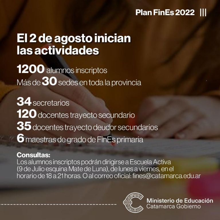 Es importante destacar además, que este año, el “Plan FinEs 2022” tendrá más de 30 sedes distribuidas en toda la provincia, con 34 secretarios, 120 docentes trayecto secundario, 35 docentes de trayecto deudor secundarios y 6 maestras de grado de FinEs primaria.