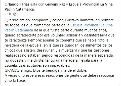 El gesto solidario fue valorado y generó comentarios positivos en las redes sociales donde le agradecieron su aporte a la escuela.
