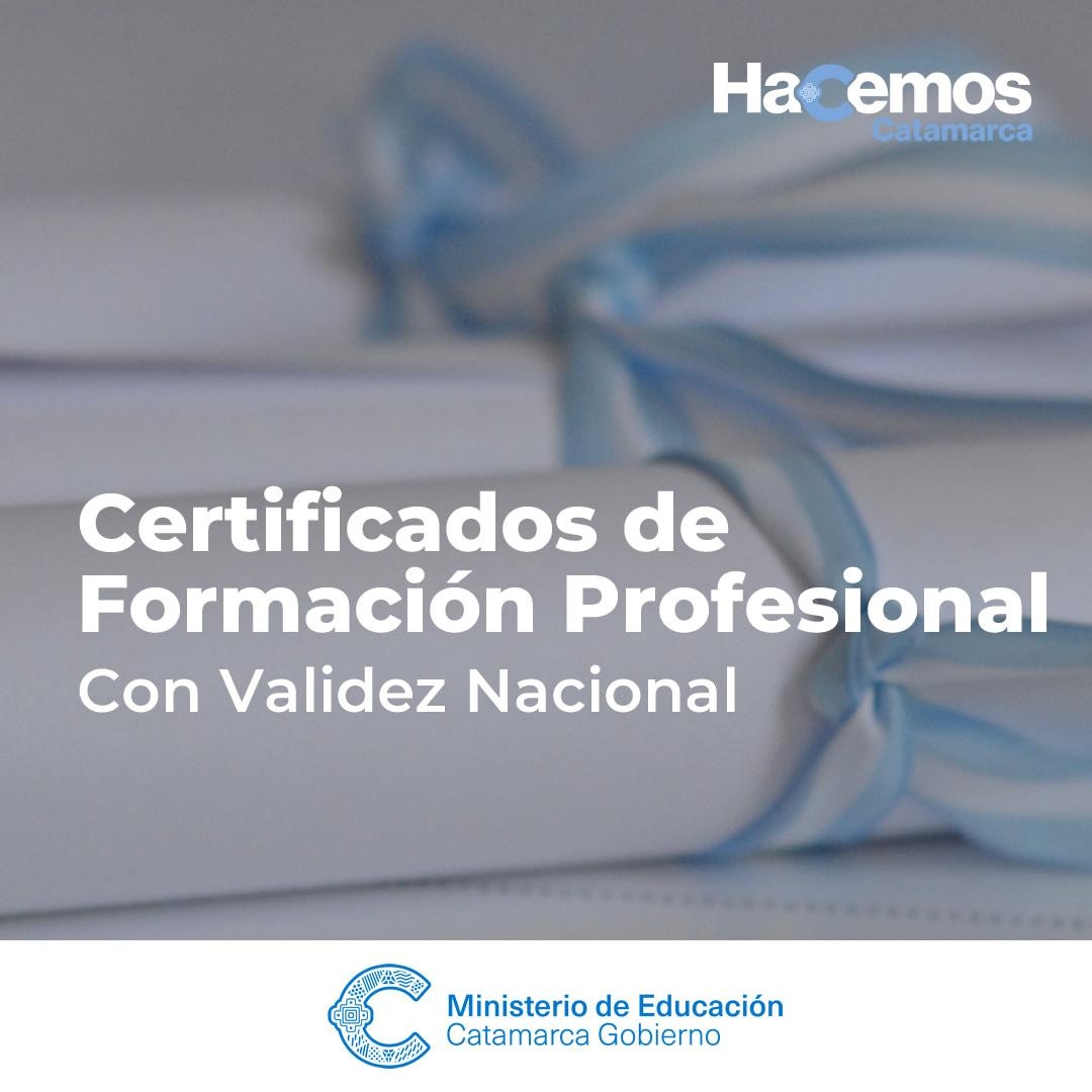 El mismo, fue aprobado por la Resolución del Ministerio de Educación, Ciencia y Tecnología N° 272/15 y por la Resolución del Ministerio de Educación N° 55/20, de la provincia de Catamarca, para ser emitidos por aquellas instituciones inscriptas en el registro federal de instituciones de ETP; para las cohortes 2016 a 2018 inclusive.