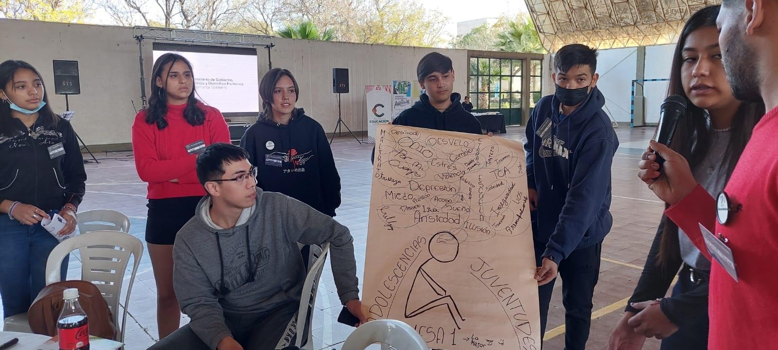 Qué es ser adolescente y joven hoy, salud integral, derechos, diversidad de género y participación, fueron algunas de las líneas que se abordaron en cada mesa de conversación. Cabe resaltar que cada mesa estuvo moderada por adolescentes y jóvenes que previamente participaron en instancias de formación para este evento, donde ellos fueron los verdaderos protagonistas.