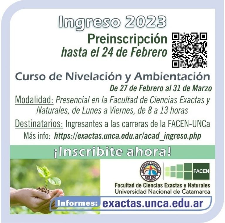 Formulario de preinscripción (impreso). En página web: https://exactas.unca.edu.ar/oferta2023.php