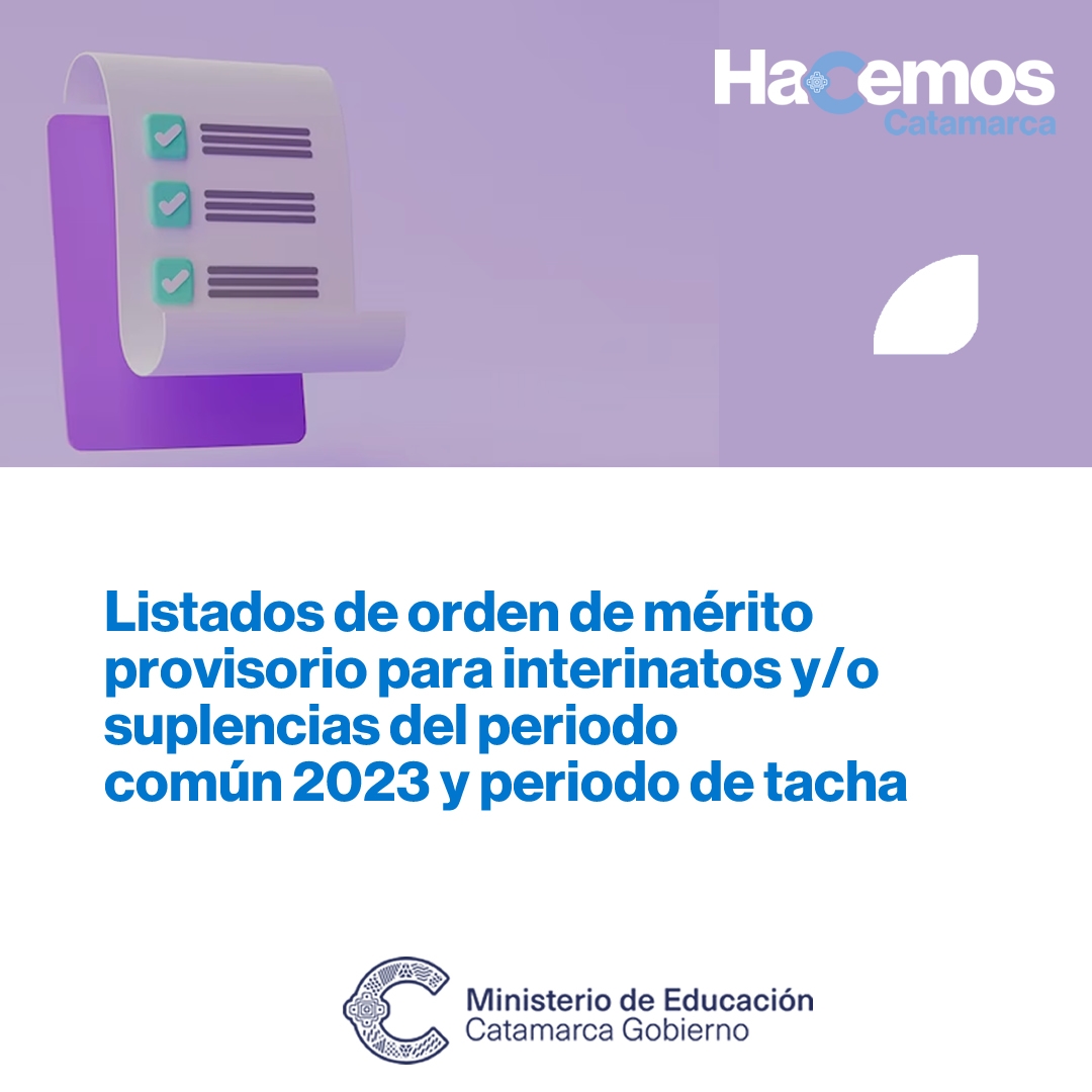 "El periodo de tacha para el listado de orden de mérito provisorio para interinatos y/o suplencias 2023”, se llevará a cabo desde el día 13/02 y hasta 22/02/2023 inclusive conforme al siguiente detalle para cada caso: