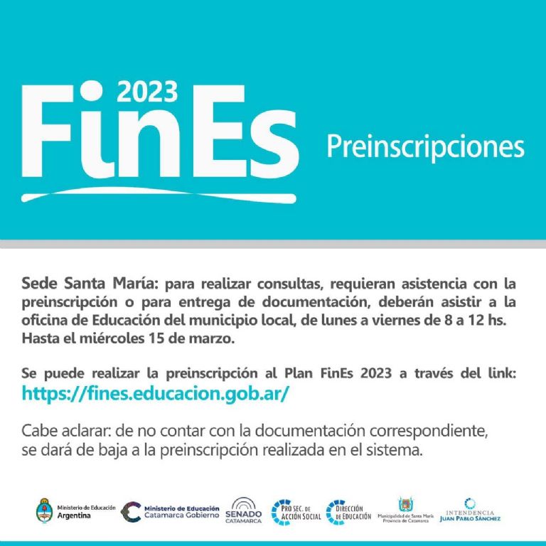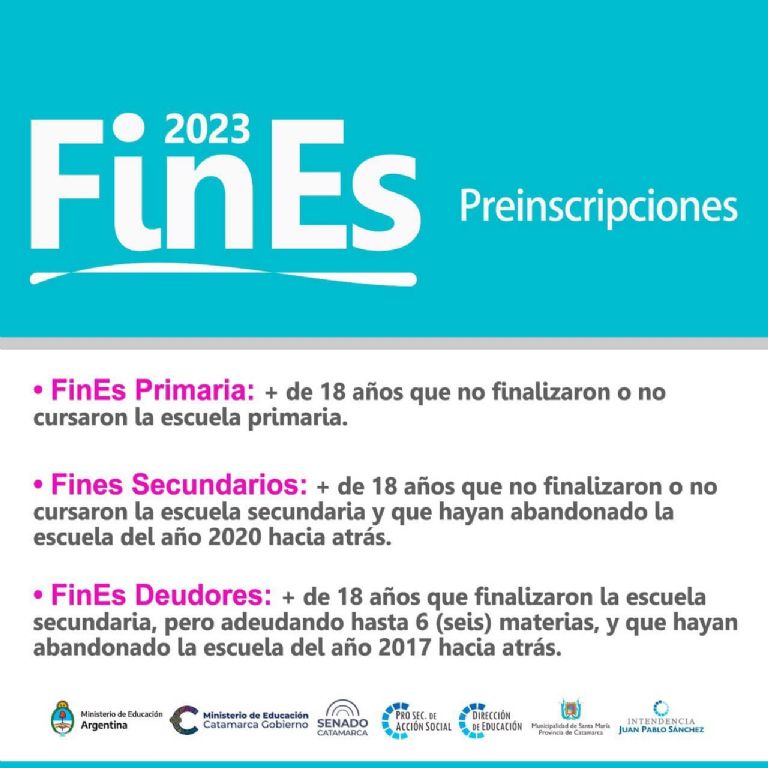 Preinscripción al Plan Fines 2023 para la culminación de la primaria y secundaria