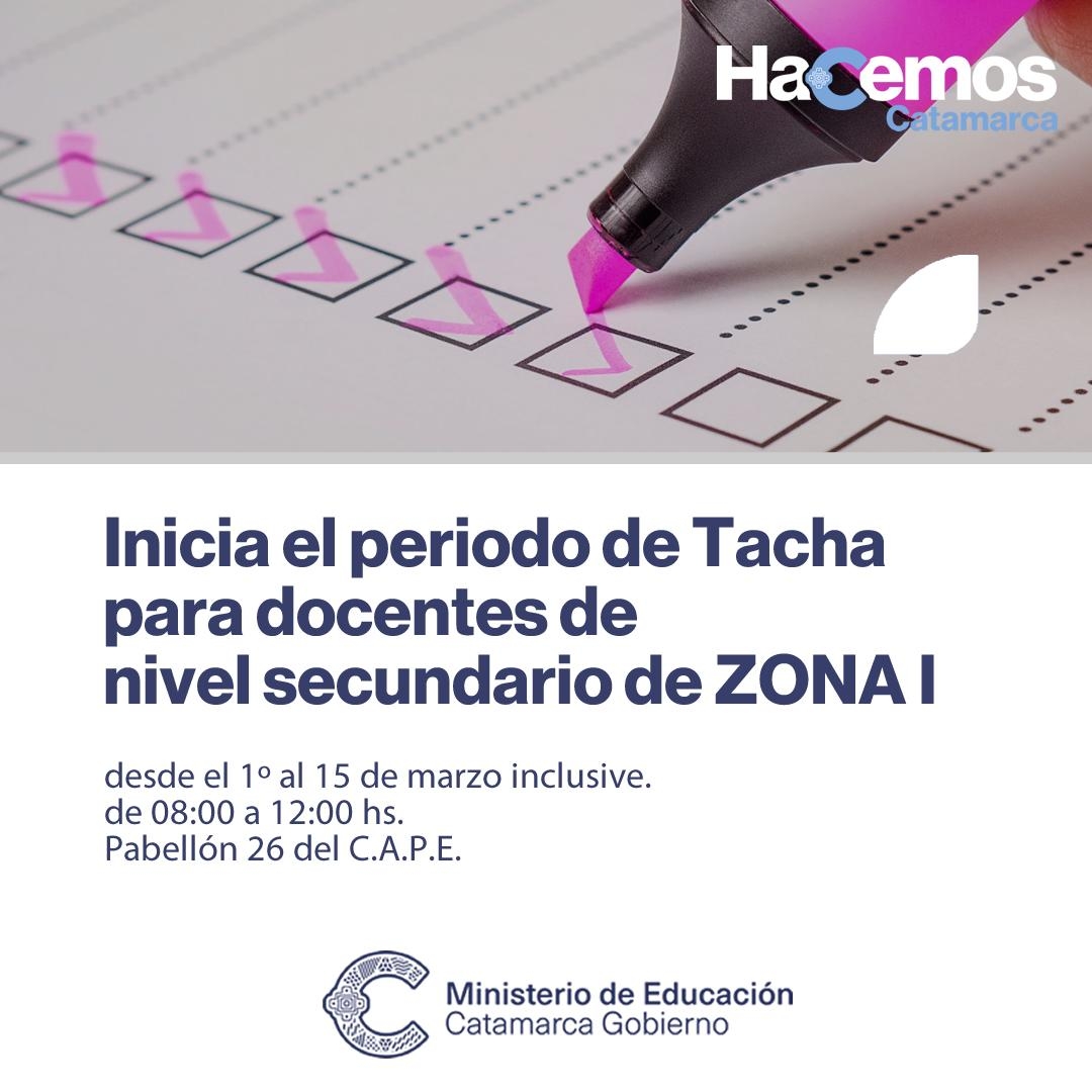 El periodo de TACHA para el Listado de Orden de Mérito provisorio del periodo 2023 se realizará en nuestra oficina, ubicada en el Pabellón 26 del CAPE, de 8 a 12 horas, desde el 1º al 15 de marzo inclusive. Excepto el día 10 de marzo, en que no se atenderá al público, por realización de Asamblea Cabecera Cero.