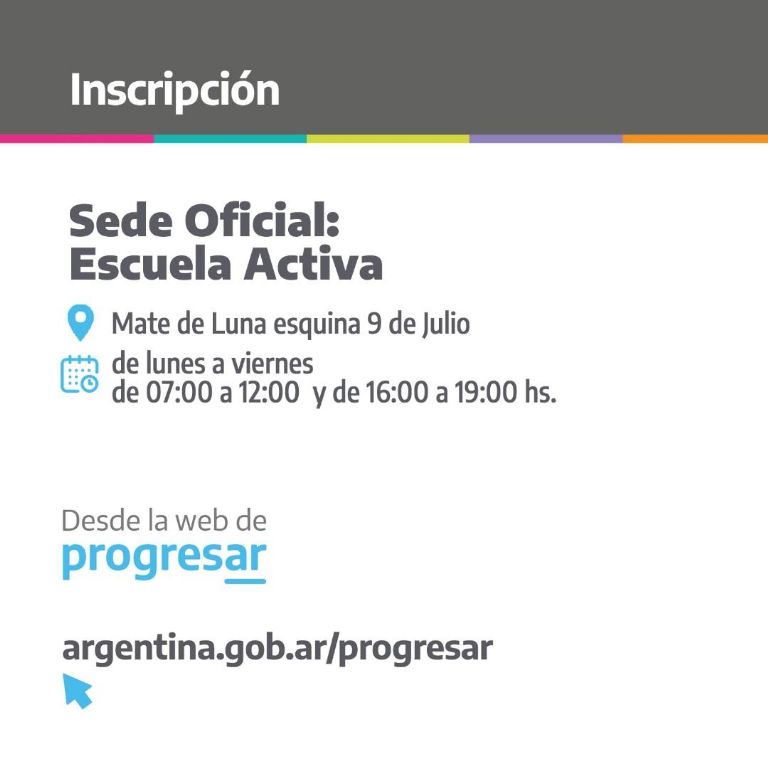 En la Ciudad Capital la sede oficial para efectuar las inscripciones es Escuela Activa (Mate de Luna y 9 de Julio), de lunes a viernes, en el horario de 7 a 12 y de 16 a 19 horas.