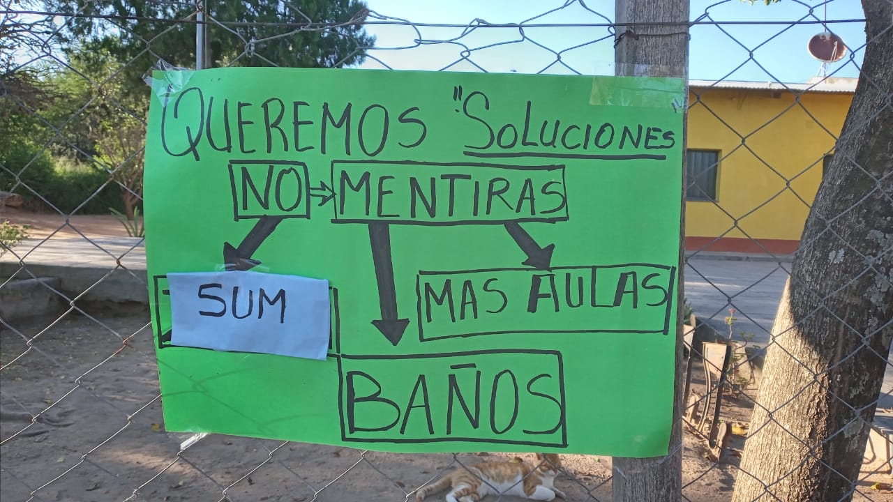 "Los padres y tutores de los alumnos d la esc 483 de Dos Pocitos, exigimos condiciones básicas para la educación de nuestros niños!. La escuela es la que más matrícula de alumnos tiene en la zona, y llevan años solicitando la ampliación y mejora de los baños!. Esta a la vista las necesidades !! Ahora nos extendieron la jornada y el establecimiento no cuenta con las condiciones dignas para afrontar las altas temperaturas, tanto alumnos como docentes sufren las consecuencias!!!ª, relataron los padres al medio Info Los Altos.