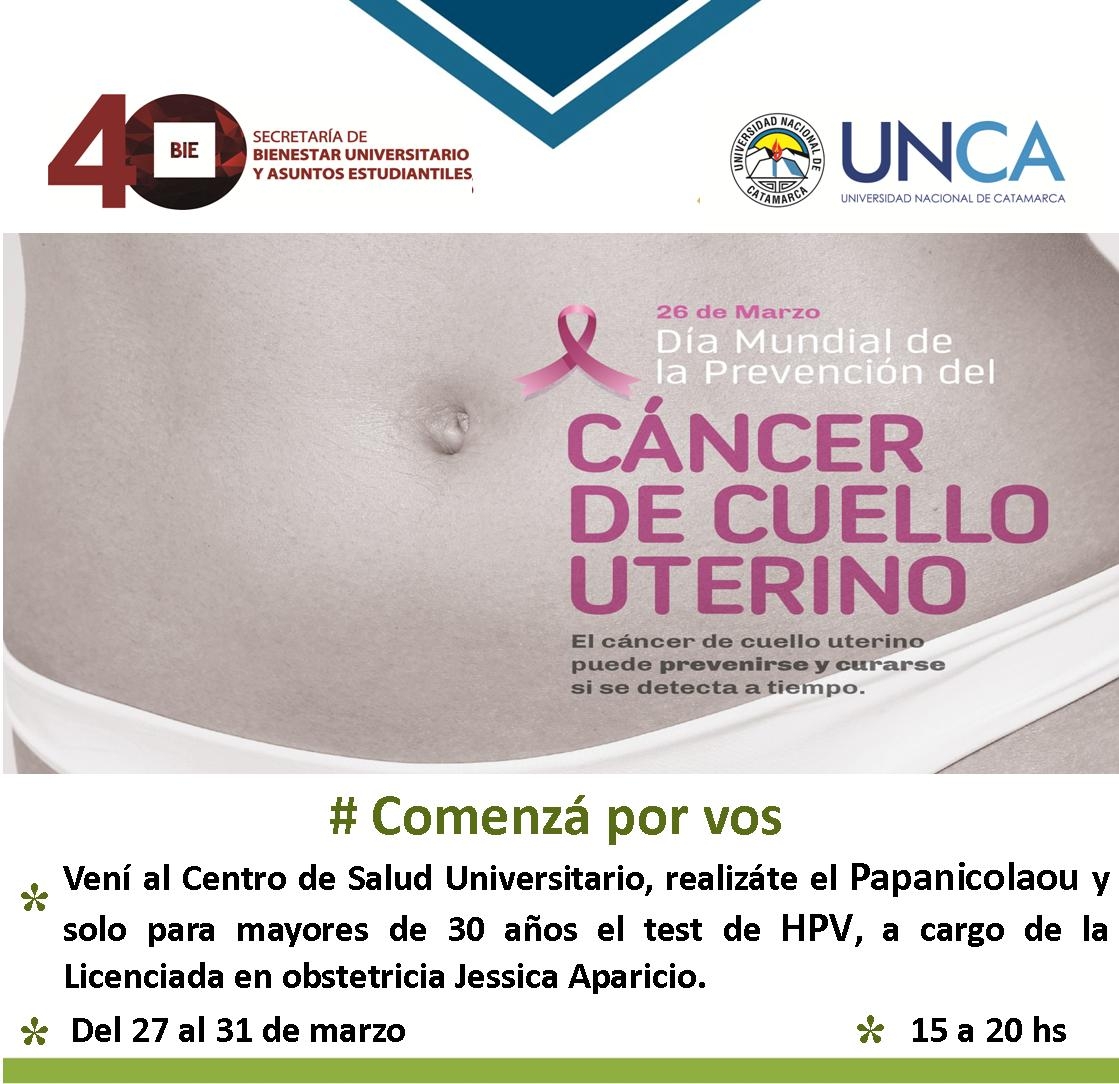 Bajo la consigna “Comenzá por vos”, durante la semana del 27 al 31 de marzo, todas las personas interesadas podrán realizarse controles de Papanicolaou y, solo mayores de 30 años, el test de HPV.
