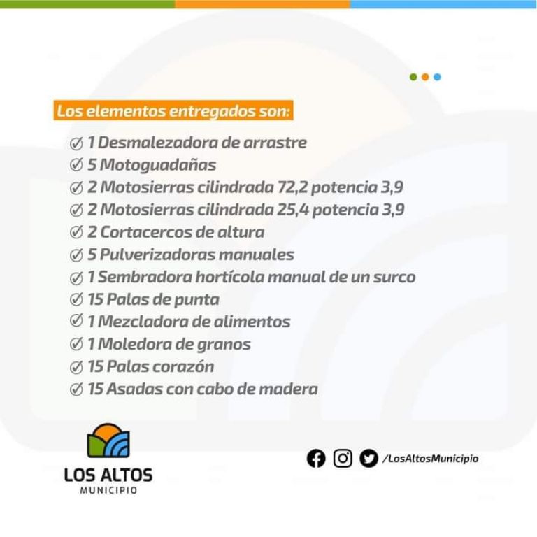 En la oportunidad, el intendente de Los Altos Raúl Barot junto a la directora de la institución educativa, Clara Lemos participaron de la entrega de herramientas y equipos que serán utilizados por los estudiantes para las prácticas agrícolas, por un valor que supera los 12 millones de pesos.