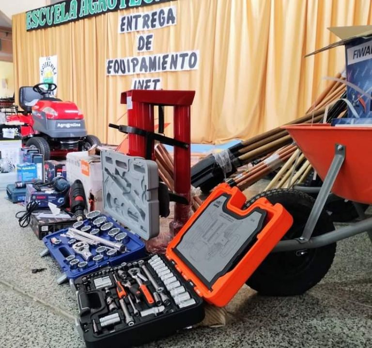 El Ministerio de Educación llevó a cabo la entrega de una importante cantidad de elementos y equipamiento destinados a la Escuela Agrotécnica de Alijilán, en el departamento Santa Rosa provenientes del Instituto Nacional de Educación Técnica (INET).