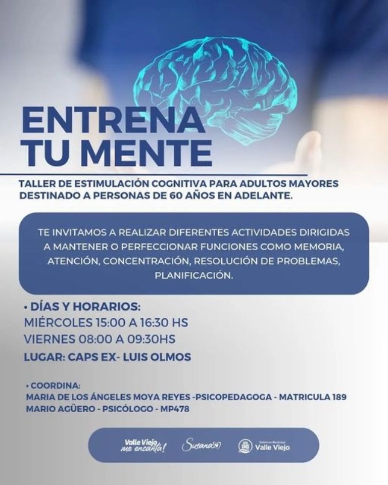 Los talleres destinados a nuestros adultos mayores a partir de los 60 años tienen como objetivo otorgar herramientas para llevar una vida saludable, realizando regularmente y con constancia actividades que sirvan para ejercitar su memoria, atención y concentración, entre otras habilidades cognitivas.