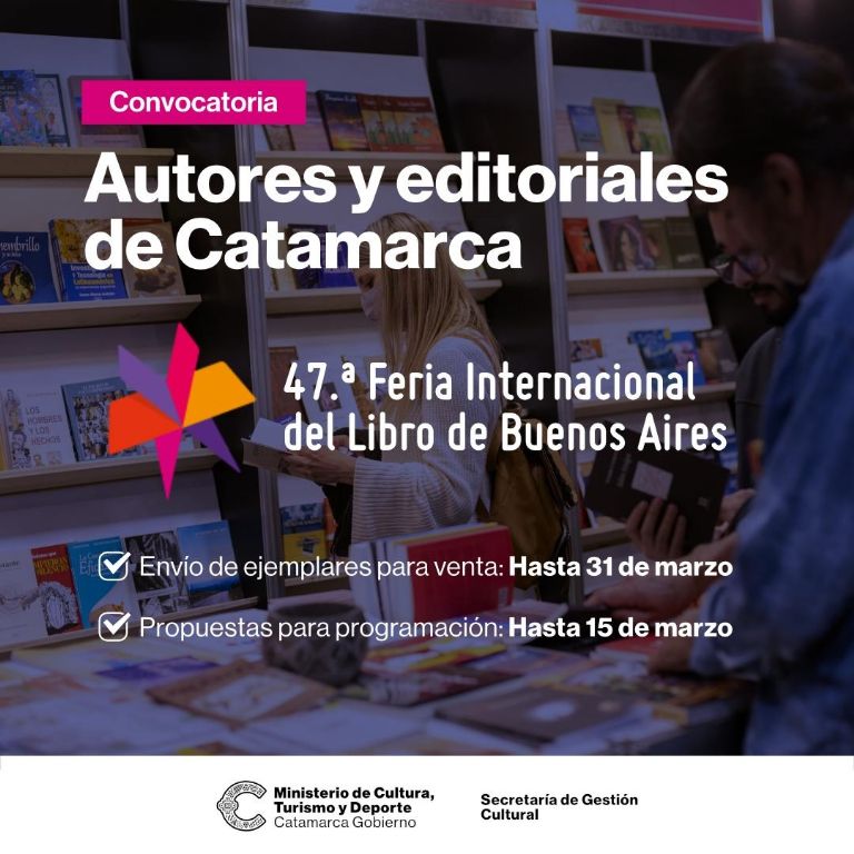 La convocatoria está abierta para los autores que deseen enviar sus ejemplares, para esto deberán dejar cinco ejemplares de reciente edición en el edificio del Archivo Histórico (Sarmiento 449) de lunes a viernes, de 8 a 12 y de 15 a 20. En caso de ya haber dejado libros, deberán actualizar sus datos enviando un mail a [email protected]. El plazo de entrega de libros es el viernes 31 de marzo.