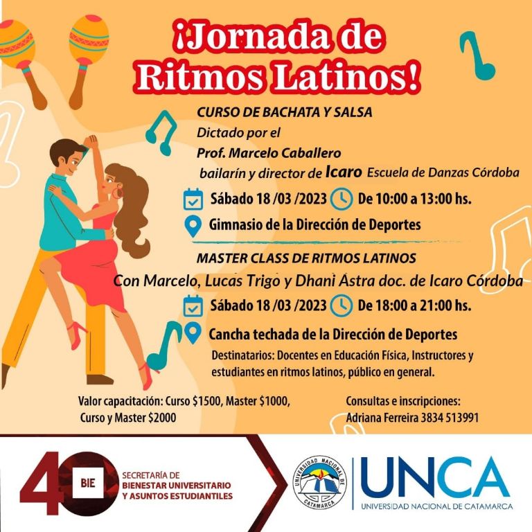 También se dictará una Master Class en Ritmos Latinos dictada por docentes de ICARO de 18 a 21 horas en la Cancha Techada de la Dirección de Deportes. Los destinatarios son Docentes en Educación Física, Instructores y estudiantes en ritmos latinos, así como público en general.