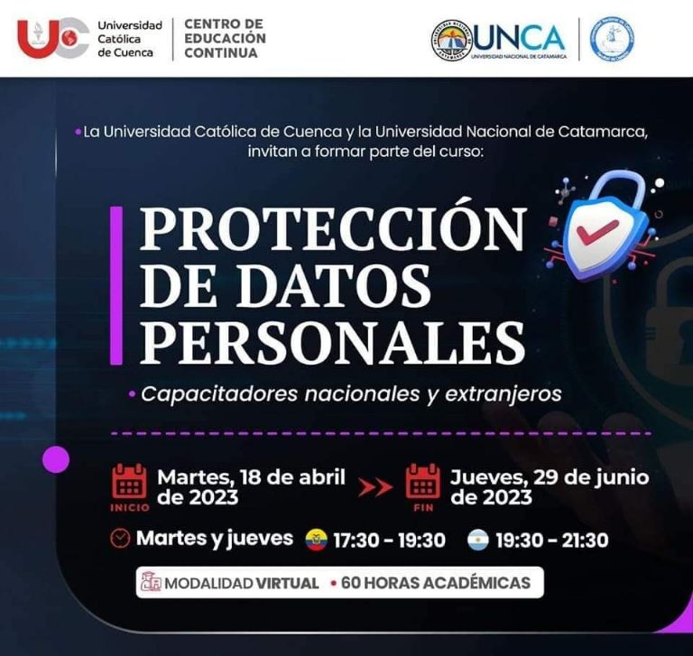 En este marco, el día 18 del corriente está previsto el inicio de la Diplomatura en Derecho de Daños, con la dirección académica de Hugo Acciarri. Así también, en la misma jornada, dará apertura el Curso de Protección de Datos Personales, que tiene como finalidad conocer la normativa vigente respecto a la protección de datos personales en posesión de terceras personas y elaborar estrategias jurídicas que permitan defender los derechos sobre la propiedad. Espacio organizado en forma conjunta con el Centro de Educación Continua de la Universidad Católica de Cuenca – Ecuador, organizanel