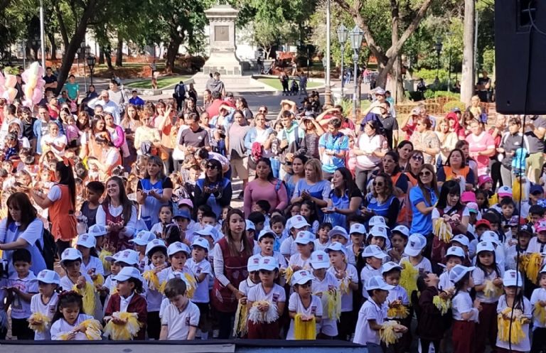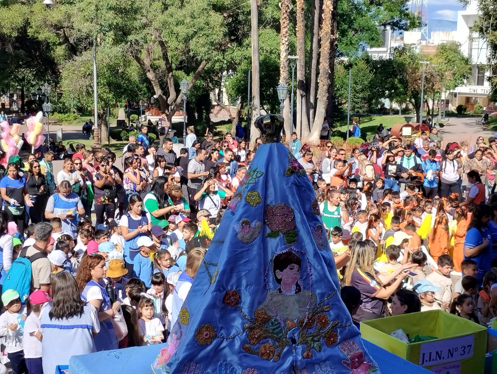 Alrededor de 27 jardines de infantes de gestión estatal, municipal y privada participaron, con la alegría propia de la niñez, portando porras amarillas y blancas, junto con sus directivos, docentes y familias, de un encuentro con la Madre del Valle en el Paseo de la Fe.