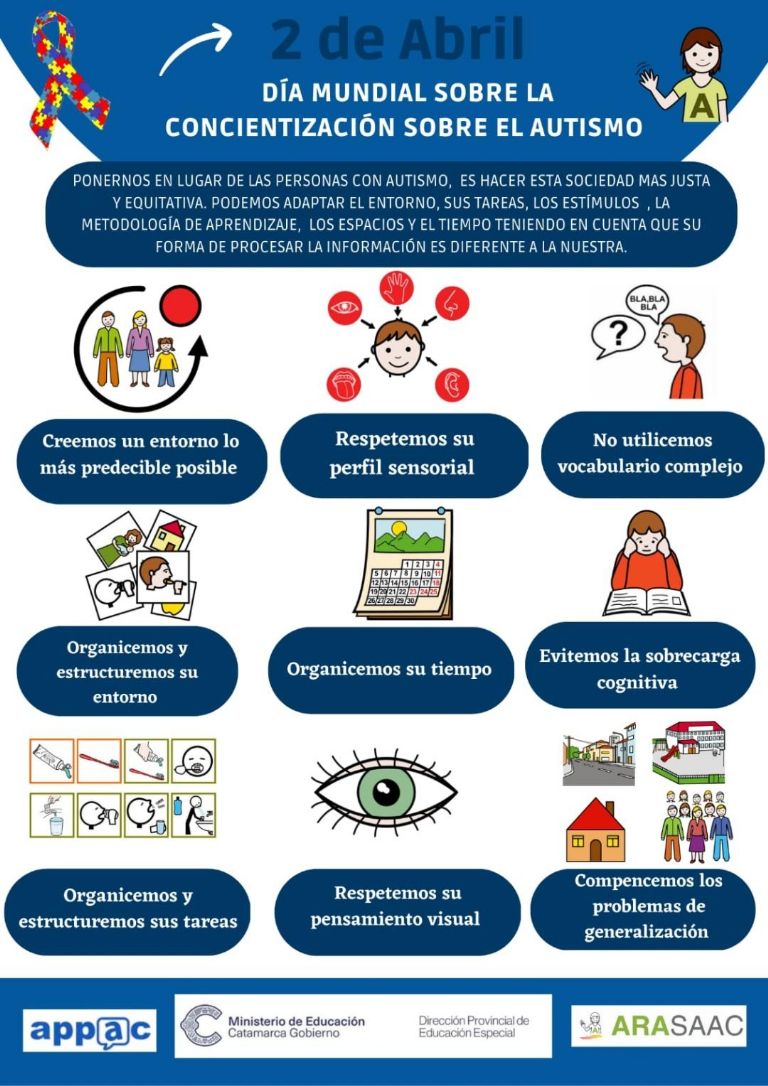 Además, estas acciones apuntan a concientizar y priorizar el apoyo de las autoridades y servicios públicos y sociales, como factores importantes que determinan la calidad de vida de las personas con autismo.