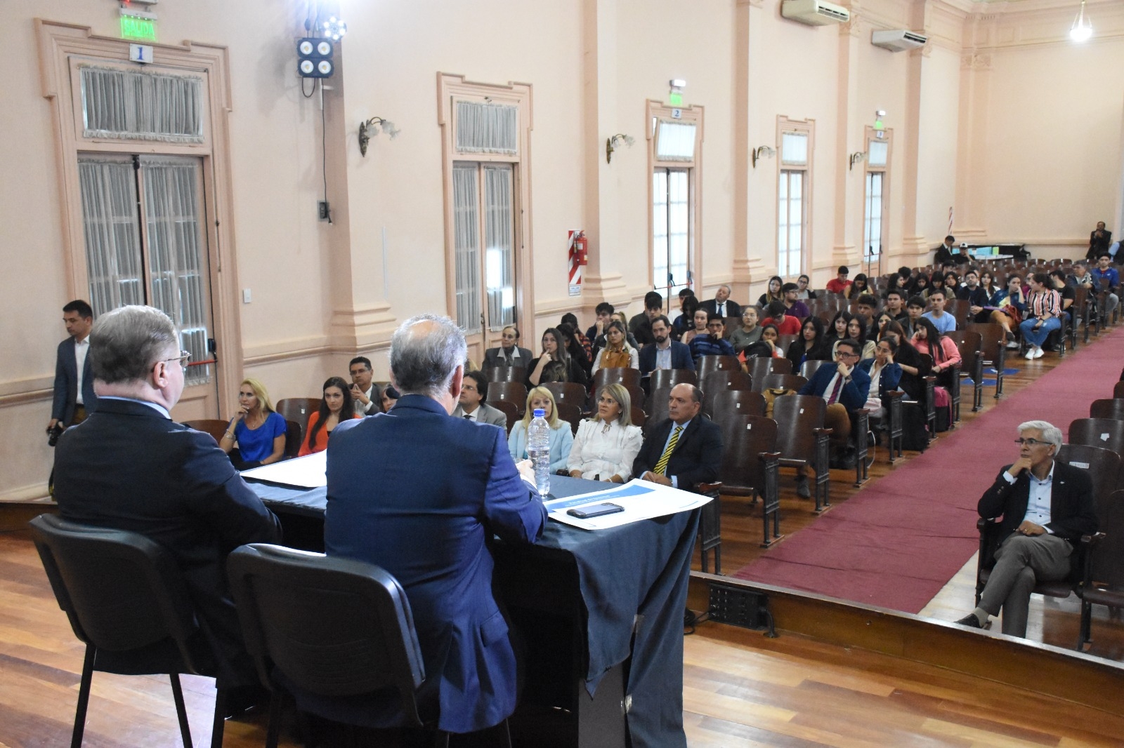 En ese marco, los conferencistas fueron distinguidos por la Facultad de Derecho como profesores invitados, y el decano Gonzalo Salerno resaltó "la importancia de tener figuras tan destacadas en el campo del derecho en nuestra comunidad jurídica y la provincia".