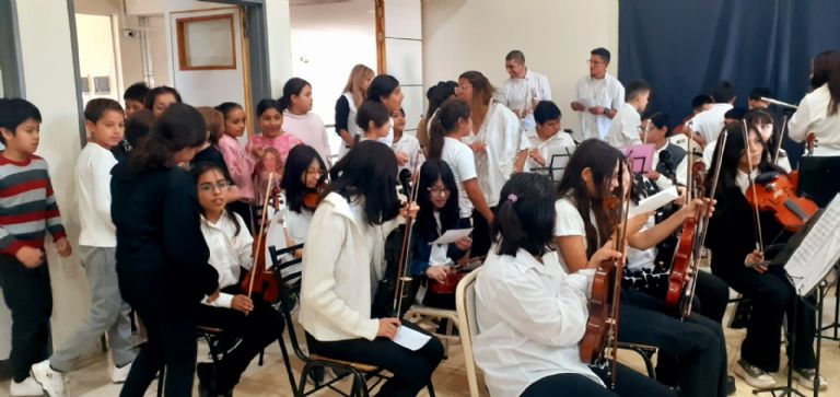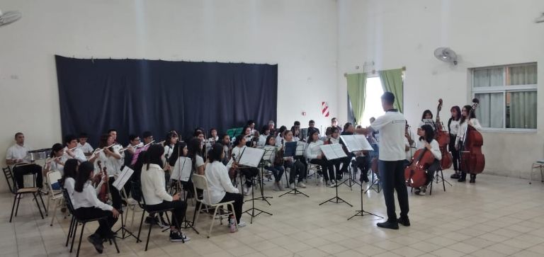 Ante la presencia de estudiantes, docentes y directivos del segundo ciclo, la orquesta, bajo la dirección del Prof. Diego Vega y el Prof. Gonzalo Nieva, interpretó obras instrumentales del repertorio regional y piezas orquestales de diversos ritmos, armonías y melodías, logrando captar el interés de la comunidad educativa, especialmente de los niños y niñas del Centro Educativo Multinivel.
