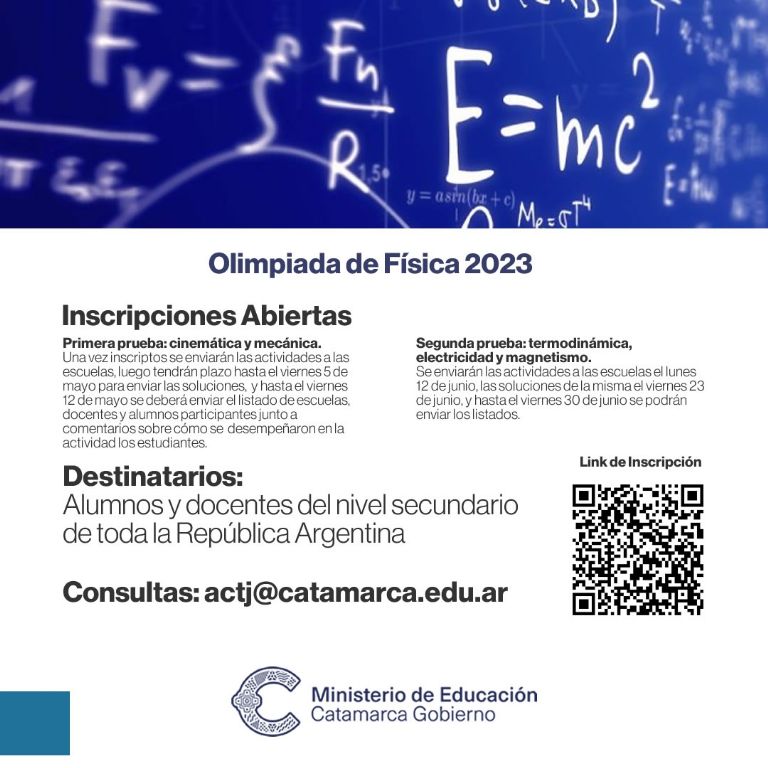 Segunda prueba: termodinámica, electricidad y magnetismo. Se enviarán las actividades a las escuelas el lunes 12 de junio, las soluciones de la misma el viernes 23 de junio, y hasta el viernes 30 de junio se podrán enviar los listados.