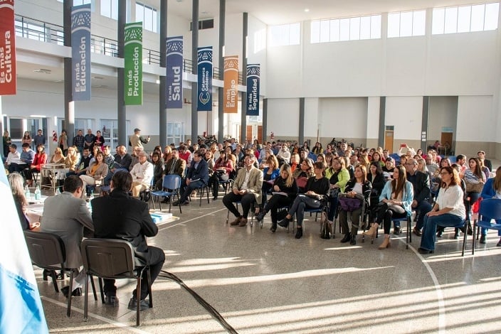 Al hacer uso de la palabra, la ministra Centurión agradeció a los funcionarios del ministerio que conduce Jaime Perczyk, por su constante colaboración, lo que permitió que la provincia acceda a todos los recursos didácticos distribuidos por la cartera educativa nacional. Asimismo, hizo hincapié en la importancia del encuentro para todos los actores que forman parte de la educación secundaria “Hoy es un día muy significativo para el nivel, ya que, con esta nueva forma de evaluar, fruto de un enorme trabajo en territorio donde escuchamos a quienes están día a día en las aulas, surgió este sistema que busca no excluir a nadie, donde vuelve la calificación numérica pero también, tiene en cuenta las consideraciones propias de la realidad en la que estudia cada uno de nuestros alumnos” señaló.