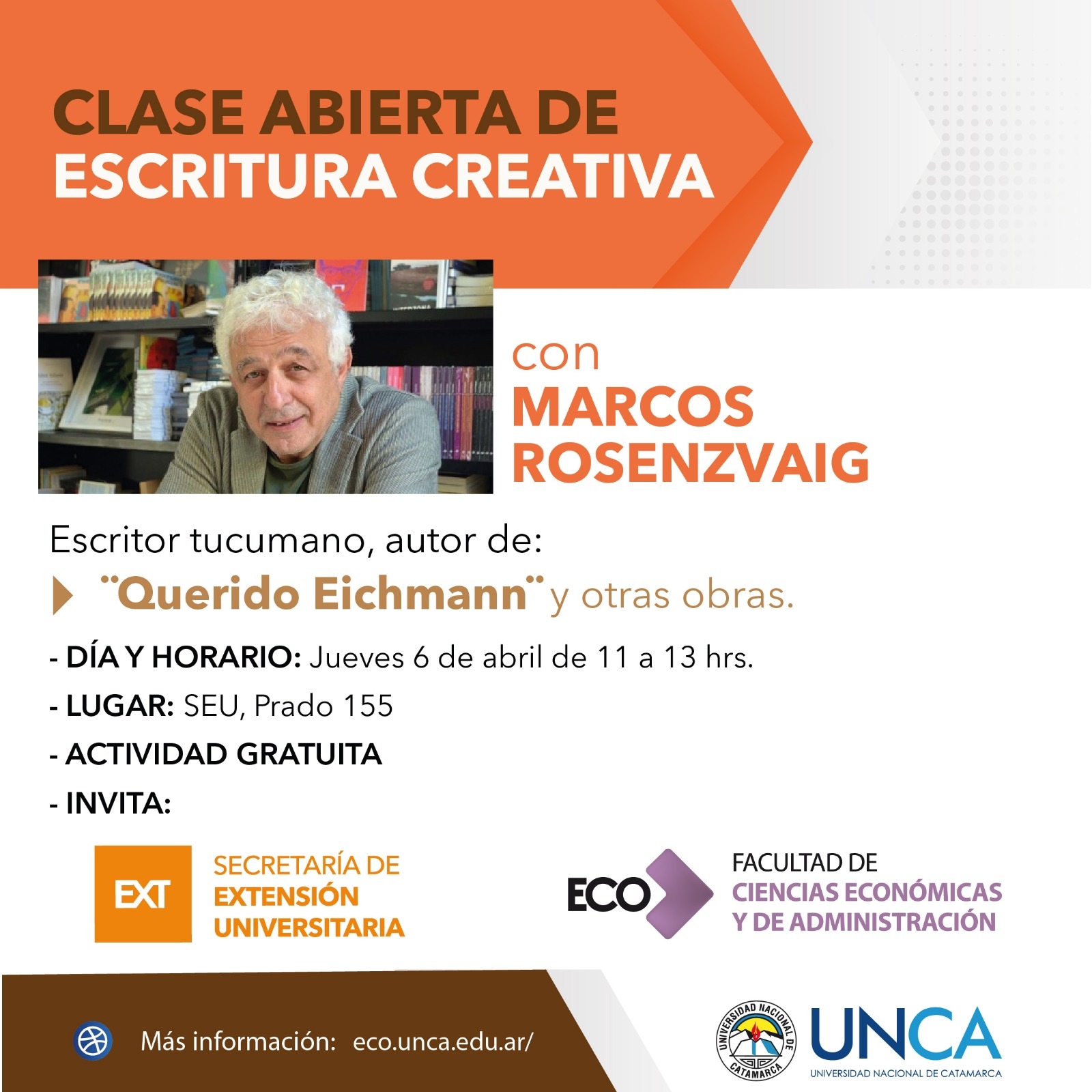 Rosenzvaig también dictará una Clase Abierta de Escritura Creativa.