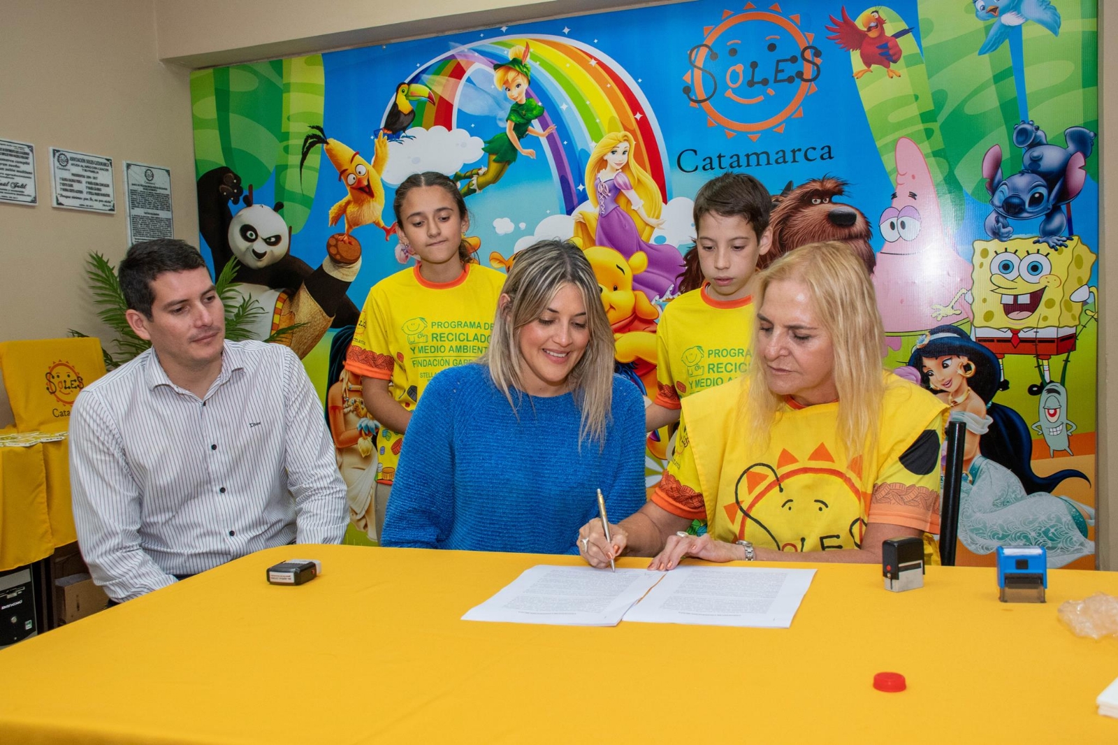 El Ministerio de Educación encabezado por Andrea Centurión y la “Asociación Soles Catamarca” a cargo de su presidenta Stella Maris Mandatori, firmaron un convenio marco para la puesta en marcha de la campaña “Tapitas que salvan vidas – educando desde el reciclado y la solidaridad”.