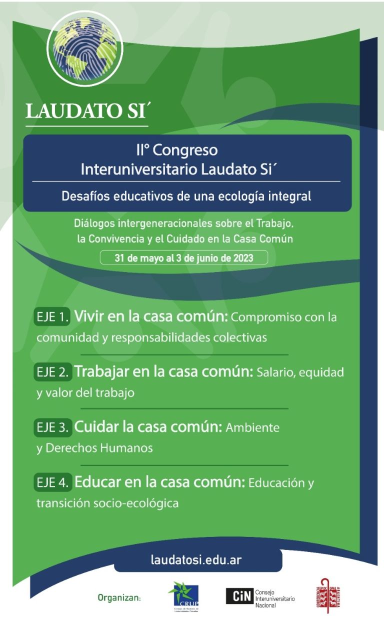 El Consejo Interuniversitario Nacional (CIN), el Consejo de Rectores de Universidades Privadas (CRUP) y la Conferencia Episcopal Argentina (CEA) organizan el II Congreso Interuniversitario Laudato Si´.