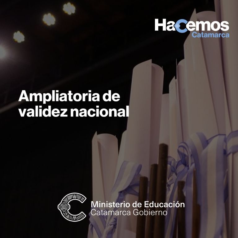 Mediante la Disposición N°408/23 APN, la cartera educativa nacional otorgó la ampliatoria de validez obtenida oportunamente a través de la Resolución Ministerial N°1980/21, para la tecnicatura mencionada. La misma, fue aprobada por la Resolución del Ministerio de Educación de Catamarca N°457/18, para los títulos emitidos por los establecimientos educativos de gestión estatal y gestión privada autorizados por la jurisdicción; para las cohortes 2020 a 2024 inclusive.