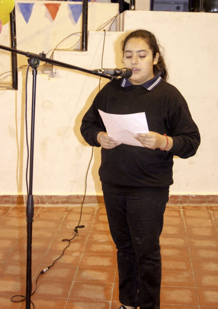 Nosotros mas de haber echado raíces, de 6 docentes que son colegas ahora y fueron ex alumnos de la institución, me refiero al Profe Alberto Pacheco, Gustavo Pacheco, Paula Pérez Canelo una de las nuevas incorporaciones en el sistema, Guadalupe Ontiveros, Aldo Herrera y de nuestra Vice Directora Karina Astrada. Esperando que de Uds., los presentes en este momento alguna vez aunque uno no esté sean Uds., personal de esta Casa, llena de prestigio, con una corana que nunca la vamos a perder que es el renombre de la escuela 44. Que haya en año 2000 cuando cumplía los primeros 10 años, queríamos la imposición del nombre de donde sale el nombre del recordado escritor Jorge Luis Borges, en una variedad y/o abanico de posibilidades y de nombres que surgían en esos momento como por Ej. Amado Nervo, de Carlos Menen diferentes nombres que lo hemos deliberado, tratado con la comunidad con las autoridades constituidas a nivel departamental, a nivel jurisdiccional y ministerial del nombre que ha quedado plasmado y que perdurará por el resto de nuestras vidas.