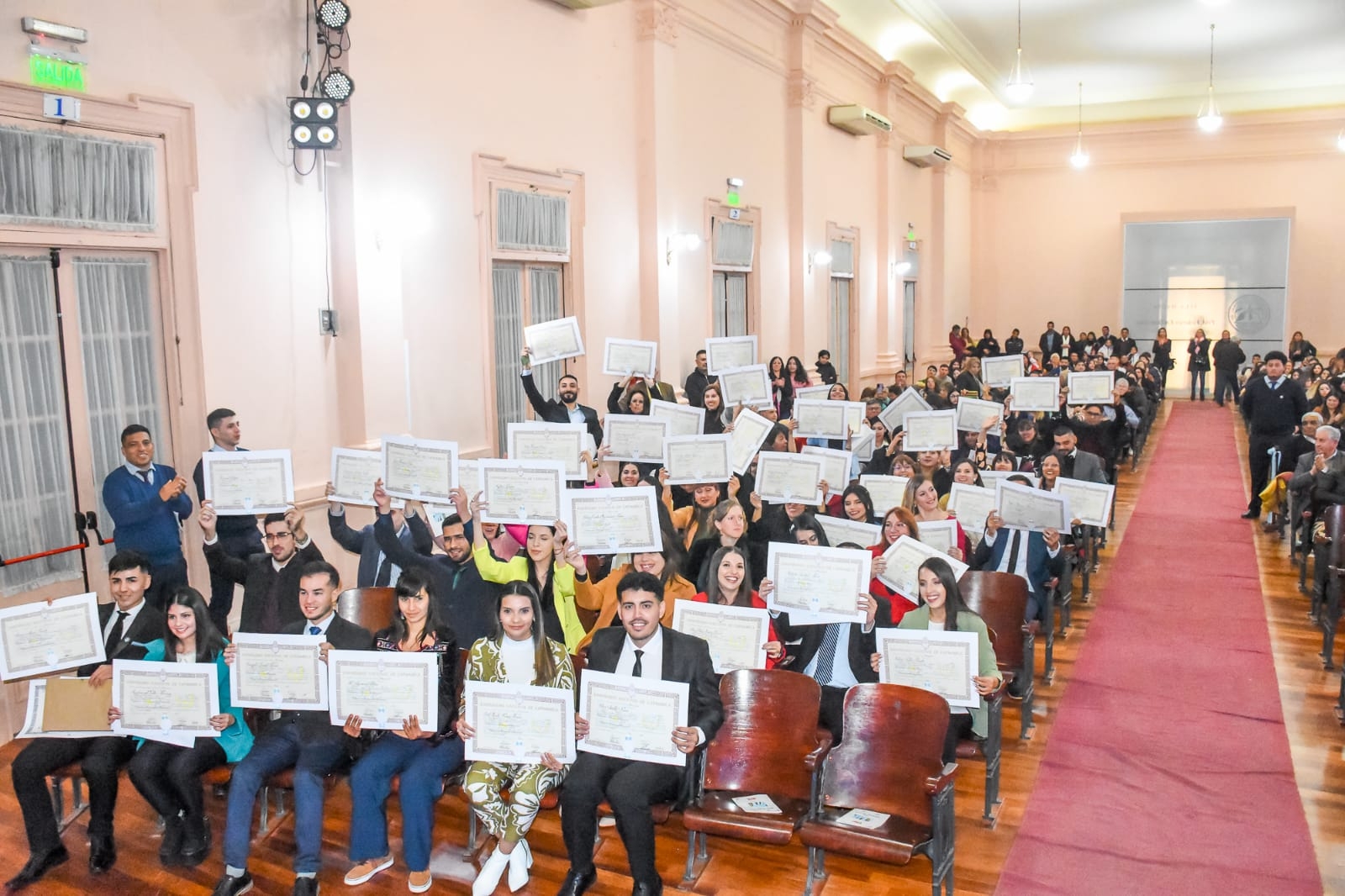 Previamente había dado su mensaje, en nombre de los graduados, José Federico Vega, egresado de la carrera de la Licenciatura en Trabajo social. “En nuestras manos tenemos una gran responsabilidad y obligación, a 40 años de la recuperación de la democracia. Las ciencias sociales y el pensamiento humanista de la que somos parte tenemos un desafío muy importante.