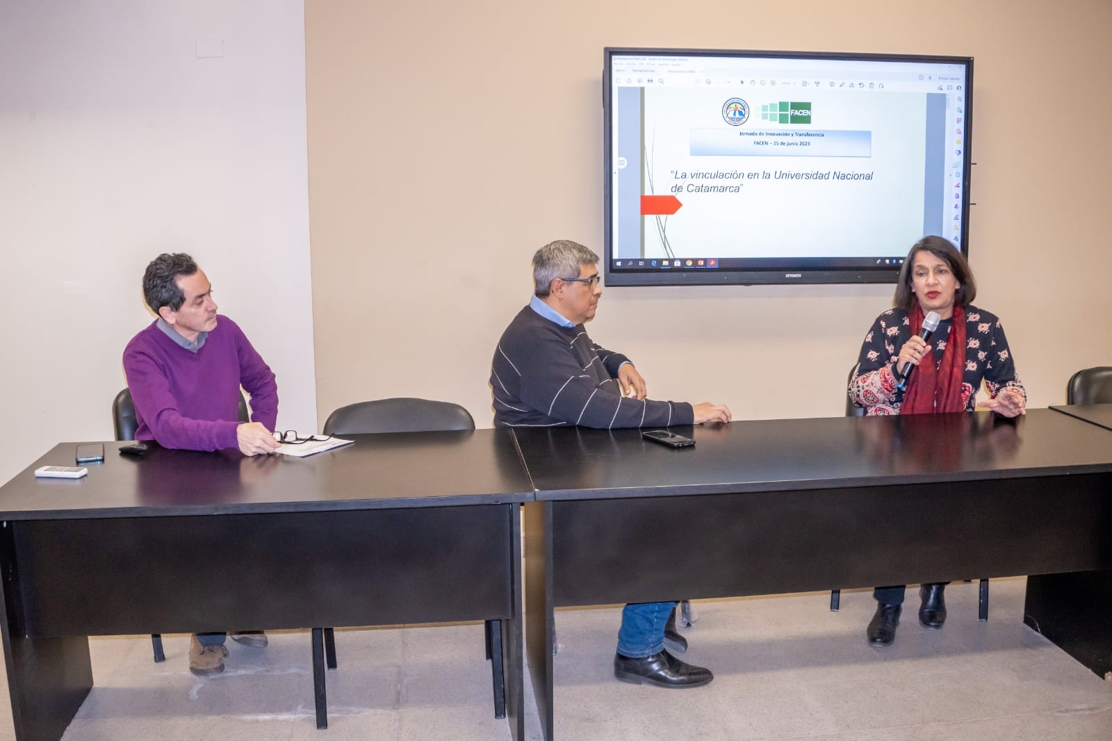 La decana de la Facultad, Lic. María Beatriz López, presentó la jornada y el secretario de Investigación y Posgrado, Dr. Raúl Ortega, expuso sobre “La Vinculación Tecnológica en la Universidad Nacional de Catamarca”.